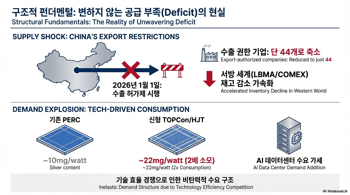 3. 펀더멘털은 여전하다: 중국의 수출 통제와 태양광 폭락장 속에서도 은의 기초 체력(펀더멘털)은 강력합니다.
