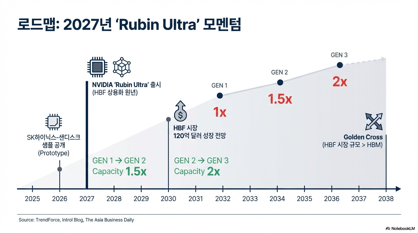 단순한 기술적 가능성에 그쳤던 HBF가 '투자 가능한 섹터'로 바뀐 결정적 이유는 **엔비디아(NVIDIA)**의 로드맵 때문입니다.